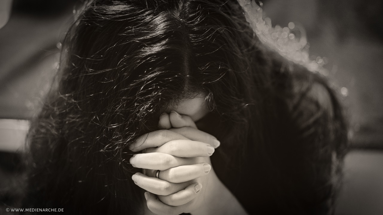 Aufnahme einer Gebet versunkenen Frau im Profil, einige Wasserfarben-Effekte.