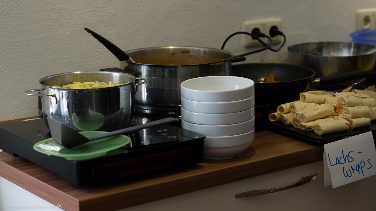 Schlüsselworte: Besteck, Dankbarkeit, einladend, entspannend, Erfüllung, Essen und Trinken, Feier, Feste, festlich, Foto, Freude, freudig, freundlich, frisch, fröhlich, Gemeinde, Güte, Liebe, Segen, Speisen, Suppenkelle, Teller, Tisch, Töpfe, Vorlegelöffel, warm