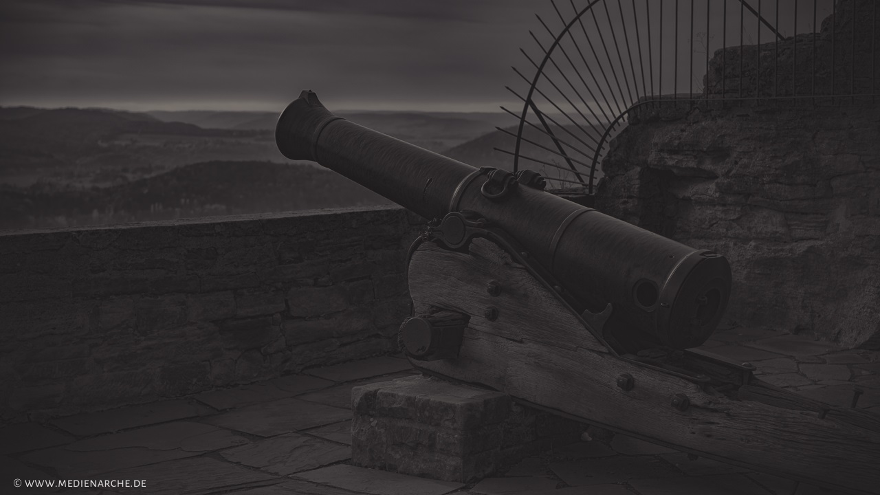 Schlüsselworte: bedrohlich, beruhigend, Geschütz, Hintergrund, Kanone, Kraft, Macht, Schutz, schwarz-weiss, Sicherheit, Stärke, unheilvoll, Vertrauen, Zuflucht