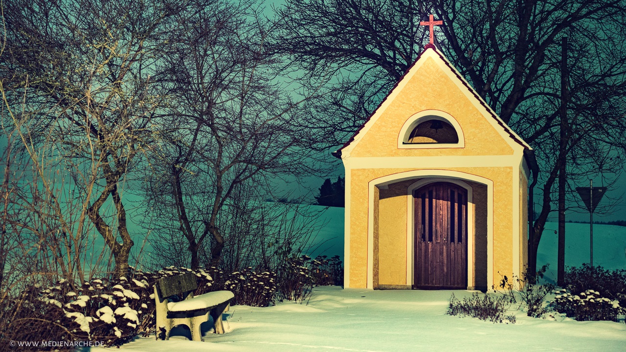 Schlüsselworte: Andacht, andächtig, einladend, Foto, Gebäude, Gebet, Kapelle, Schnee, Winter