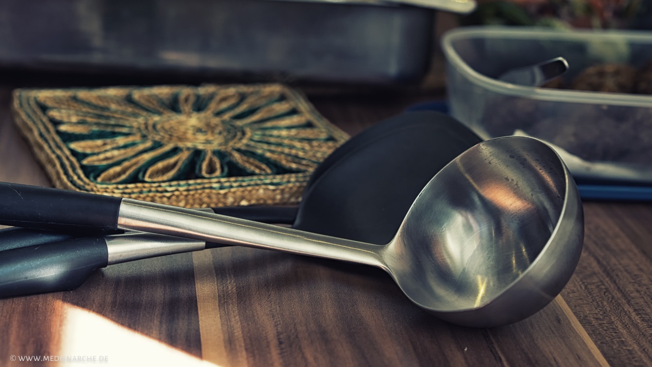 Schlüsselworte: Besteck, Dankbarkeit, einladend, Erfüllung, Essen und Trinken, Feste, Foto, freundlich, Gemeinde, Hilfe, Löffel, motivierend, Segen, Suppenkelle, Untersetzer, Vorlegelöffel, warm