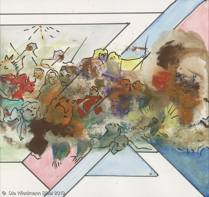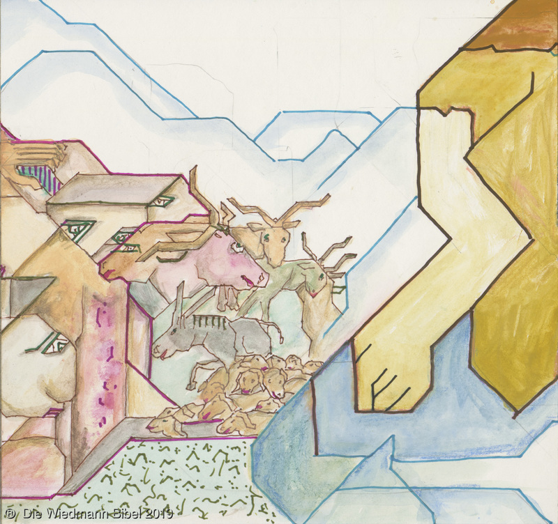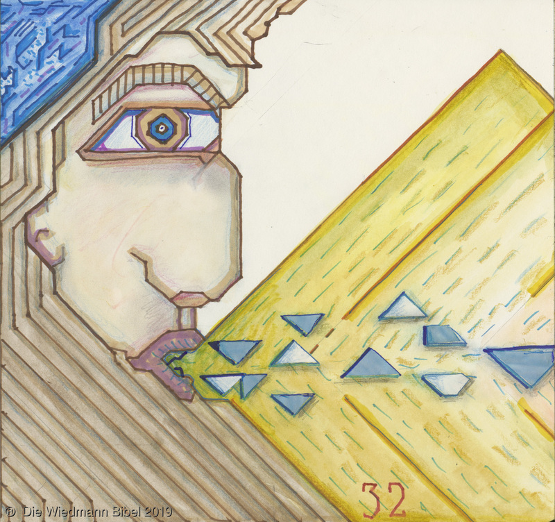 Merkt auf ihr Himmel, ich will reden. Meine Rede nimm wie Regen, niesle wie Tau, Regen auf das Gras, Tropfen auf Kraut. Ich will den Namen des Herrn preisen, ihm allein gebt die Ehre. Er ist ein Fels. Seine Werke sind vollkommen. Gedenke der vorigen Zeiten. Habt acht auf die Jahre von Geschlecht zu Geschlecht. Als der Höchste den Völkern Land zuteilte und der Menschen Kinder voneinander schied, da setzte er die Grenzen der Völker. Er fand ihn in der Wüste und hatte acht auf ihn. Er behütete ihn wie einen Augapfel. Wie ein Adler ausführt seine Jungen und über ihnen schwebt, breitet er seine Fittiche aus, nahm und trug ihn auf seinen Flügeln. Als aber Jeschurum fett ward, wurde er übermütig. Hat Gott verworfen, hat ihn zur Eifersucht gereizt. Er ist fett, dick und feist geworden. Durch fremde Götter hat er Gott gereizt. Fremden Göttern, bösen Geistern geopfert. Im Fels Gott außer acht gelassen. Als dies der Herr sah, sprach er: Ich will mein Antlitz vor ihnen verbergen. Es sind untreue Kinder. Ich will alles Unglück über sie häufen. Ein Feuer ist entbrannt durch meinen Zorn. Ich will der Tiere Zähne unter sie schicken und der Schlangen Gift. Wie geht´s zu, dass einer 1.000 verjagt und zwei sogar 10.000 flüchtig machen. Die Rache ist mein. Ich will vergelten zur Zeit, da ihr Fuß gleitet. Denn die Zeit ihres Unglücks ist nahe. Wer sind ihre Götter, ihr Fels, auf den sie trauen. Preiset ihr Heiden sein Volk. Ich will meine Pfeile mit Blut trunken machen. Mein Schwert soll Fleisch fressen, mit Blut von Erschlagenen und Gefangenen von den Köpfen streitbarer Feinde. Als Mose das Lied beendete vor Israel sprach er: Nehmt zu Herzen alle Worte, die ich euch heute bezeuge. Die ist euer Leben. Und der Herr redete mit Mose am selbigen Tage und sprach: Geh auf das Gebirge Abarim auf den Berg Nebo, der da liegt im Land Moab, gegenüber Jericho, und schaue das Land Kanaan, das ich den Kindern Israel zum Eigentum geben werde. Und der Herr ward Herr über Jeschurum als sich versammelten die Häupter des Volkes samt den Stämmen Israels. Ruben lebe und sterbe nicht, seine Mannschaft gewinne an Zahl. Bringe ihn zu seinem Volk und vergrößere seine Macht. Zerschlage Levis Feinde, die ihn hassen, dass sie nicht gegen ihn aufkommen. Über Benjamin halte der Herr, der ihn liebt, seine Hand. Sebulon freue dich über deine Fahrten. Iraschar fraue dich über deine Zelte in den Bergen.
