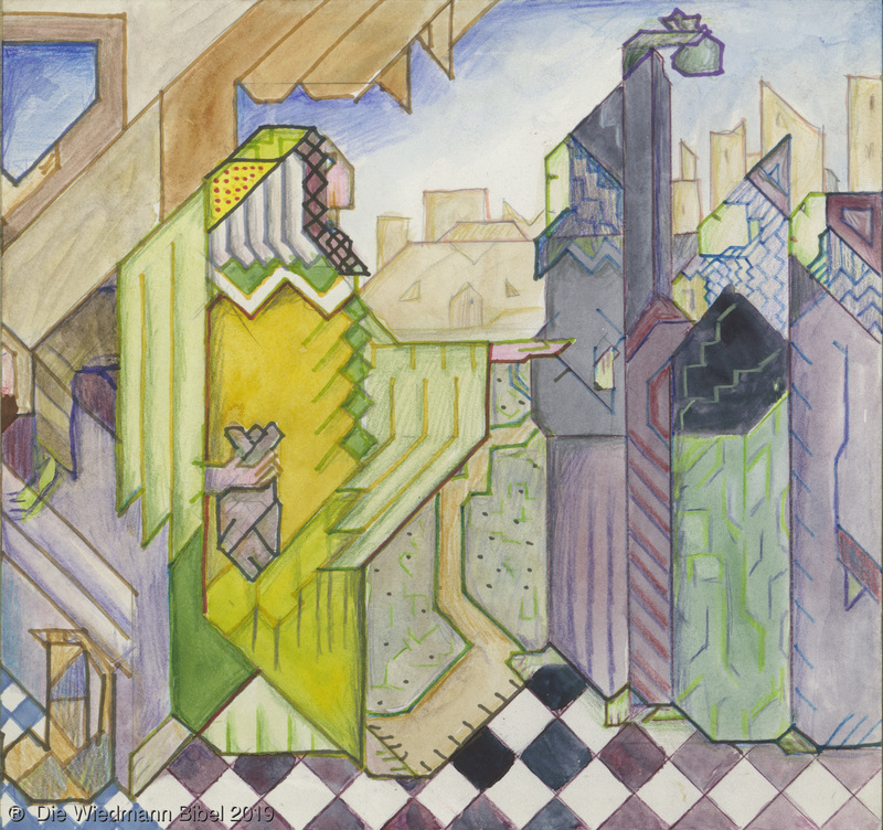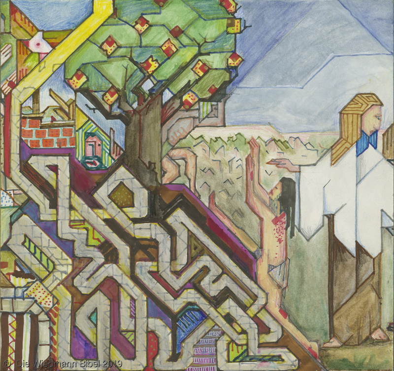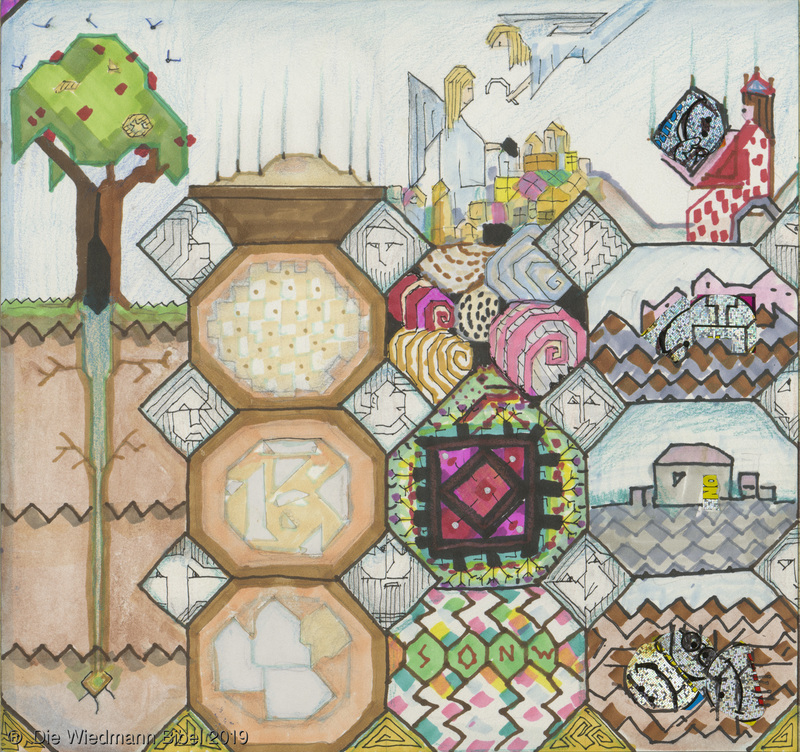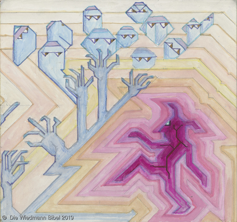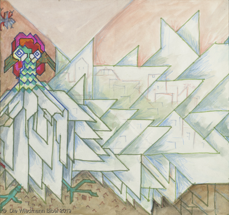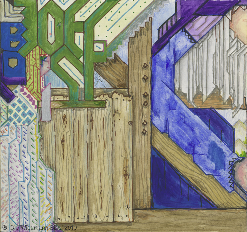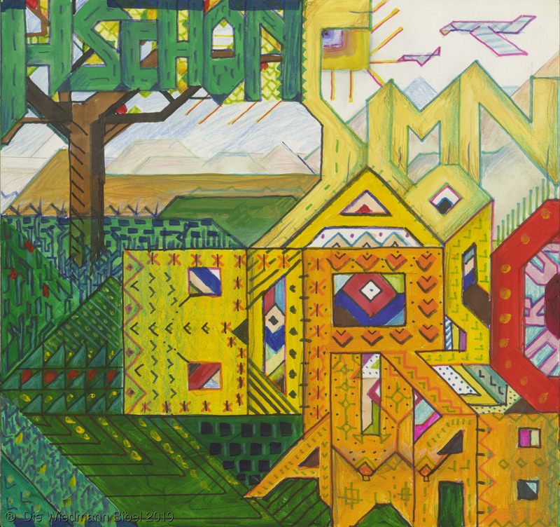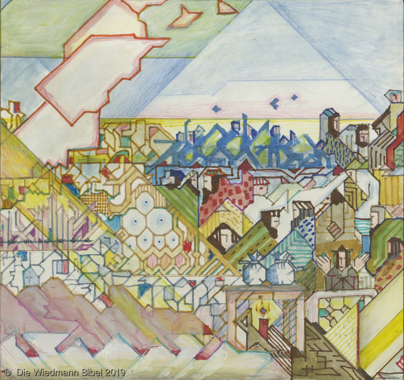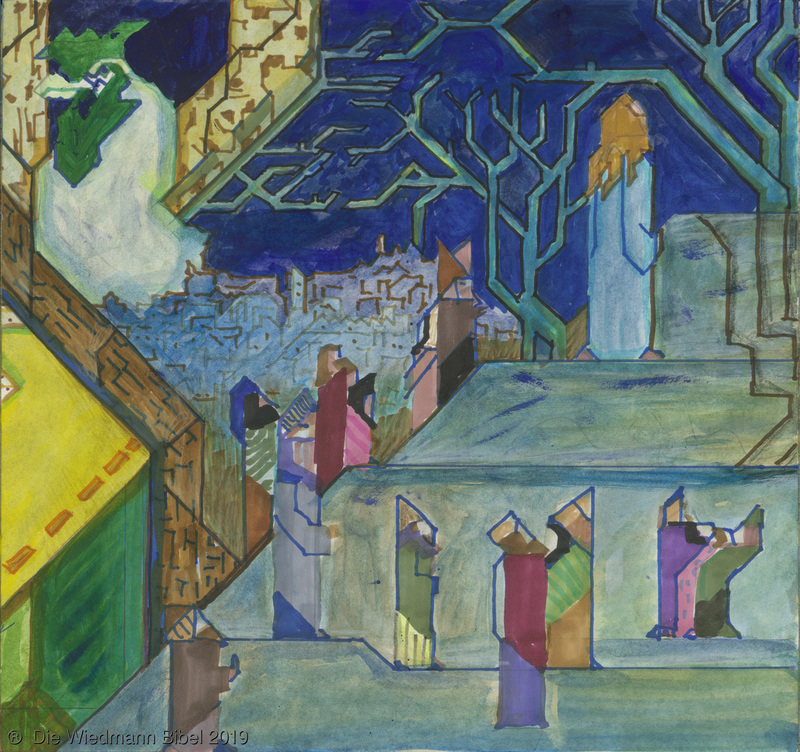 Fensterbild: Jesu auf dem Markt / Aussätzige rufen Jesu um Hilfe / Aussätzige bei Phanisaun Samariter merkt seine Heilung und kehrt um / Er dankt Gott / Jesu segnet ihn geheilte Aussätzige / sind je 3 unter sich / Frage Jesu: es waren doch 10?