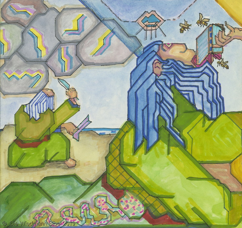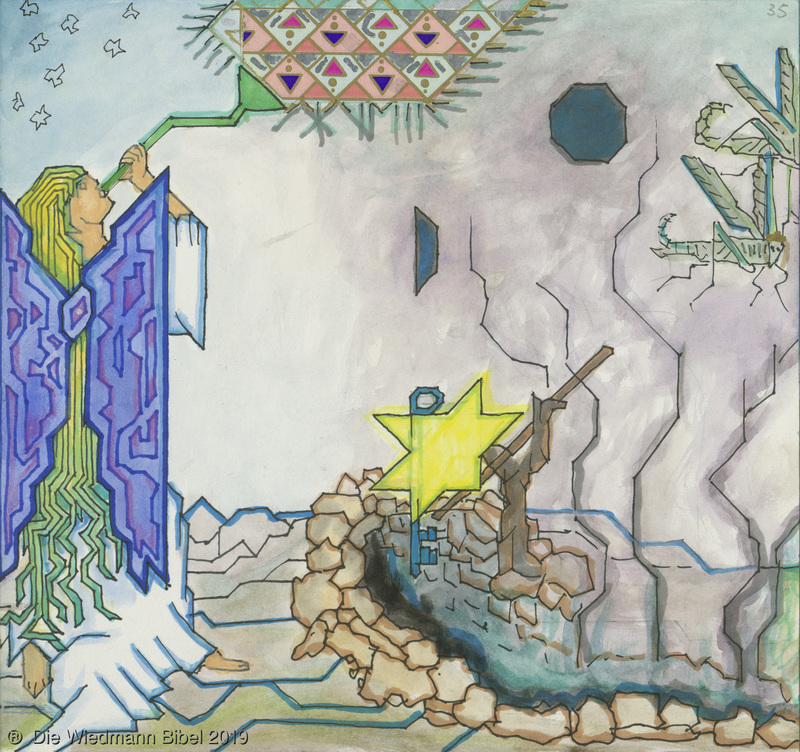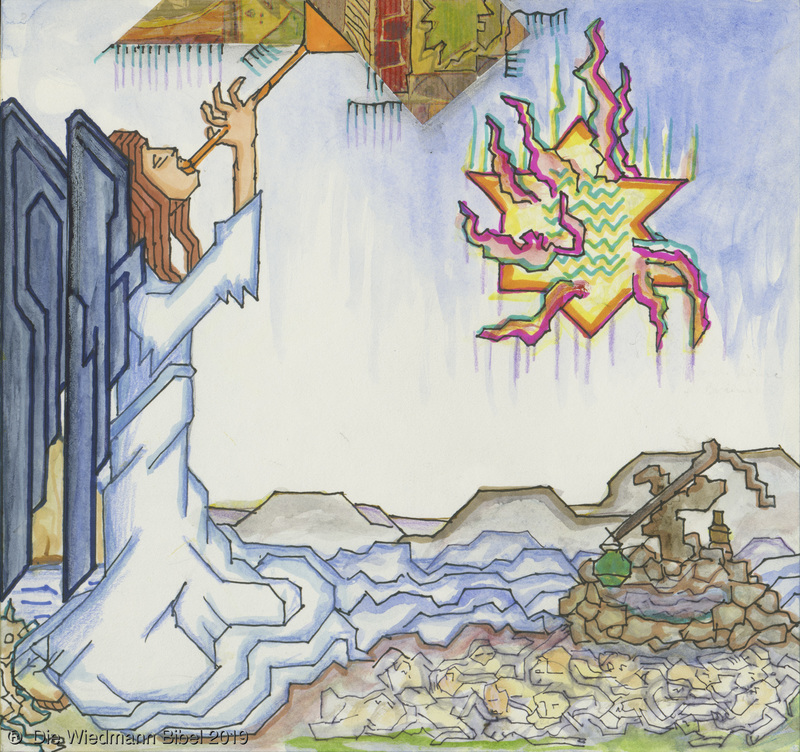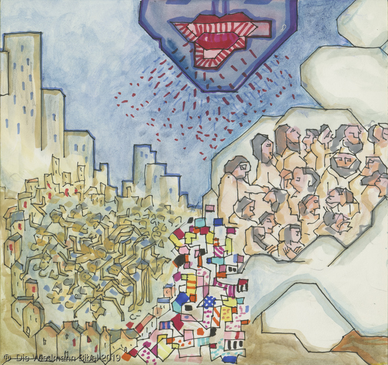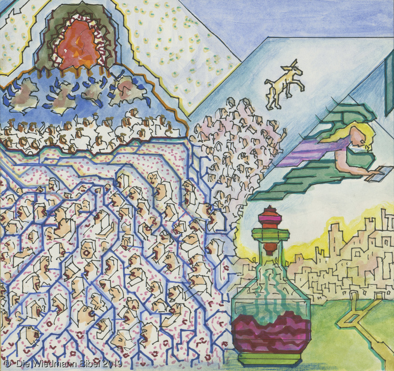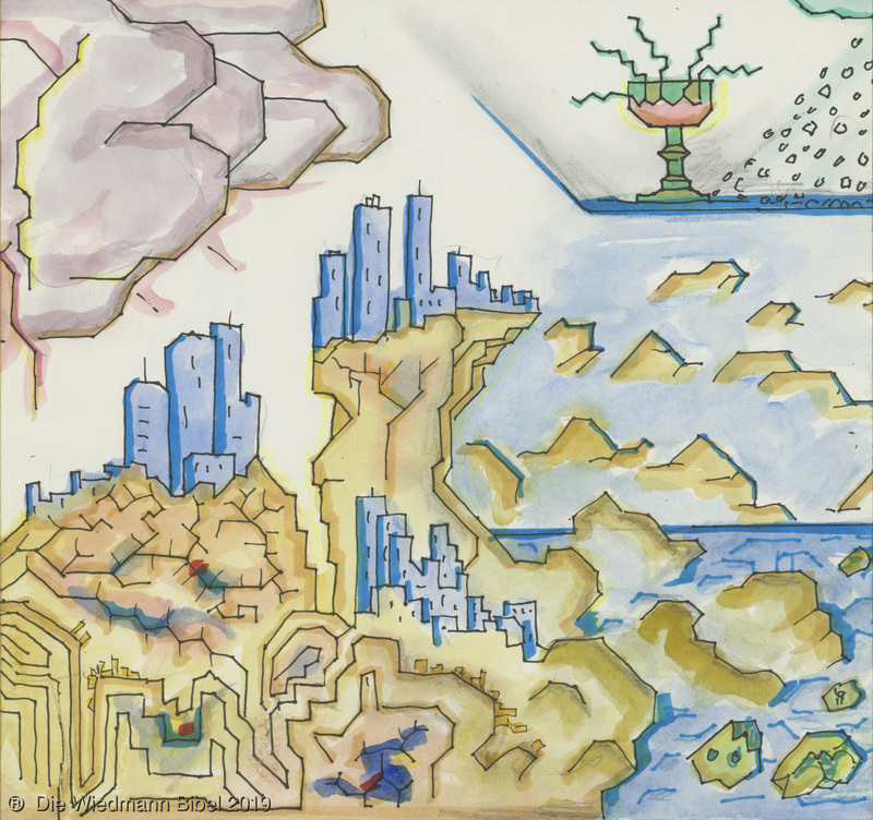 Und ich sah einen neuen Himmel und neue Erde. Die ersten vergingen und das Meer. Ich sah die heilige Stadt Jerusalem von Gott aus dem Himmel herabgefahren. Bereitet wie eine geschmückte Braut ihrem Mann. Eine große Stimme sprach: “Siehe da, die Hütte Gottes bei den Menschen, und er wird bei ihnen wohnen und es wird sein Volk sein. Und Gott wird abwischen alle Tränen. Noch Tod, noch Leid, noch Geschrei, noch Schmerz wird mehr sein. Denn das erste ist vergangen.” Und der auf dem Thron saß sprach: “Siehe, ich mache alles neu. Schreibe, denn diese Worte sind wahrhaftig.”
