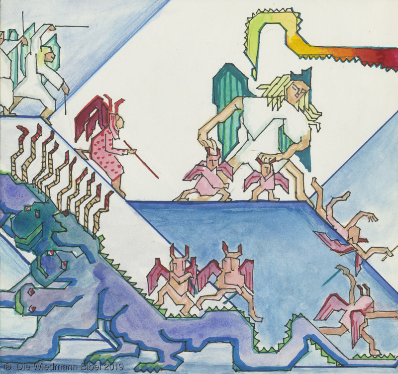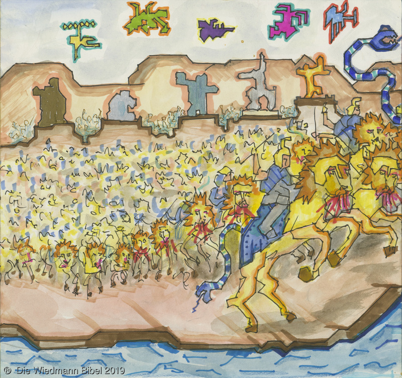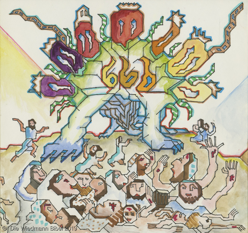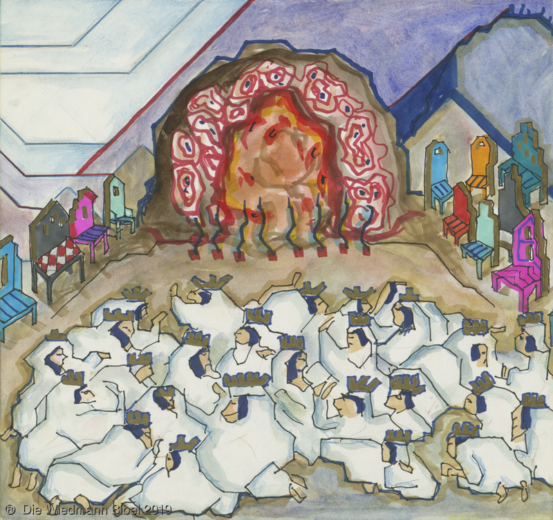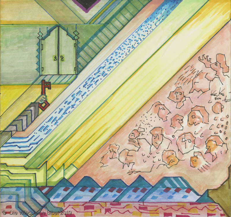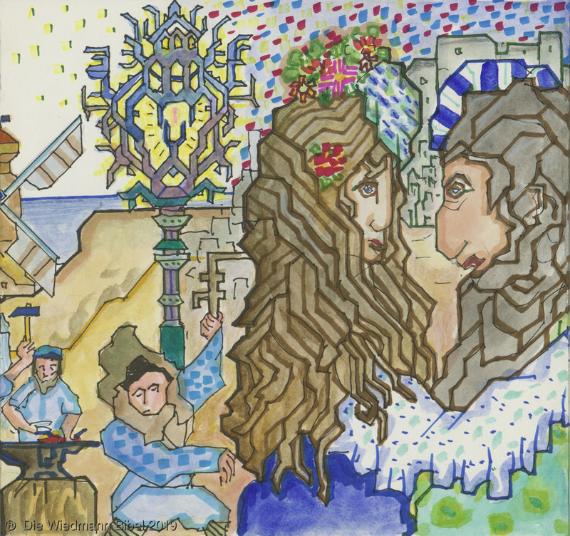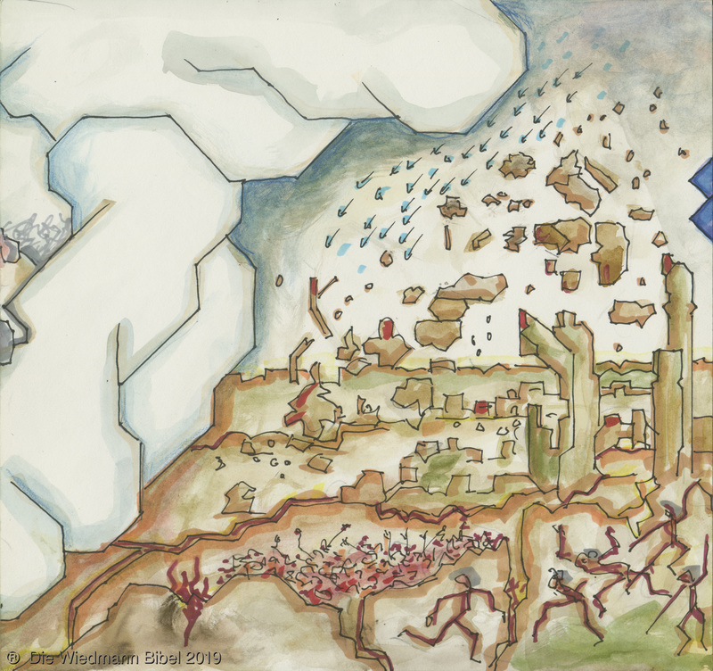 Und ich sah einen neuen Himmel und neue Erde. Die ersten vergingen und das Meer. Ich sah die heilige Stadt Jerusalem von Gott aus dem Himmel herabgefahren. Bereitet wie eine geschmückte Braut ihrem Mann. Eine große Stimme sprach: “Siehe da, die Hütte Gottes bei den Menschen, und er wird bei ihnen wohnen und es wird sein Volk sein. Und Gott wird abwischen alle Tränen. Noch Tod, noch Leid, noch Geschrei, noch Schmerz wird mehr sein. Denn das erste ist vergangen.” Und der auf dem Thron saß sprach: “Siehe, ich mache alles neu. Schreibe, denn diese Worte sind wahrhaftig.”