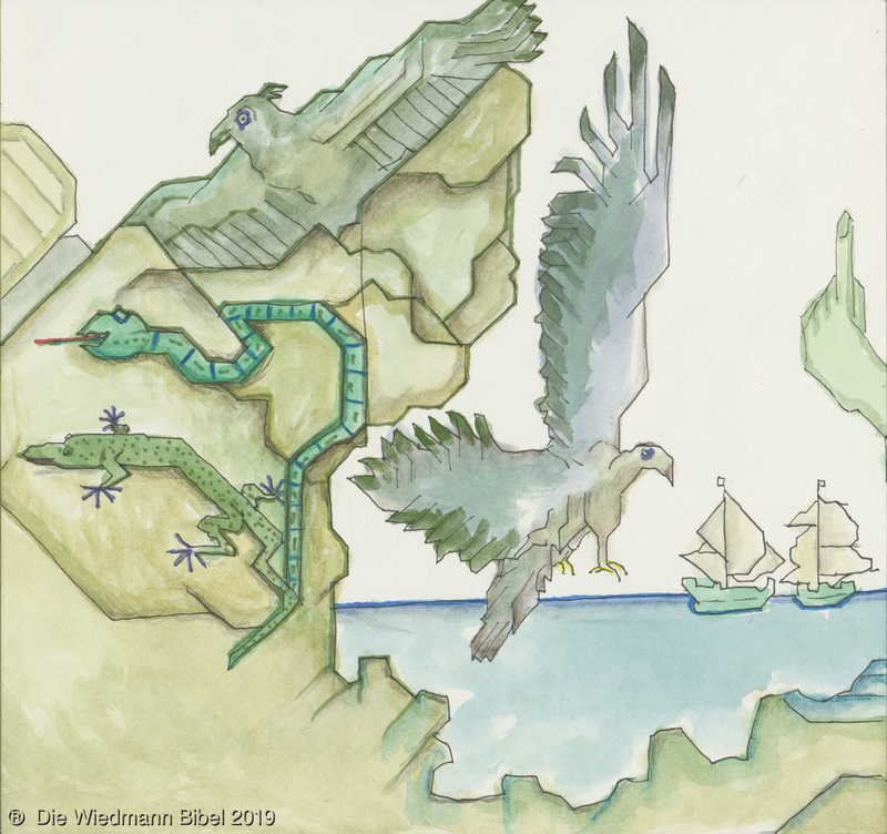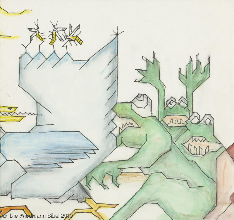 Darum wurden sie zu recht mit ähnlichen Tieren gezüchtigt und durch eine Menge von Ungeziefern gequält. Frösche: Während denen in ihrem Hunger die Esslust verging wurden diese Wachteln nach kurzer Entbehrung sogar eine fremdartige Speise gereicht. Heuschrecken und Stechmücken, giftige Schlangen Denn sie wurden durch sie getötet diese aber von Schlangenbissen gerettet.